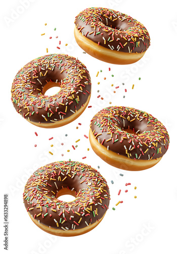 donut flying with sprinkles, isolated on white background PNG Format