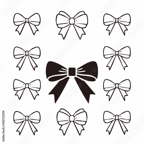 Doodle Bow Illustration Set, Various Bow Designs for Hair, Gift Wrap, or Decor