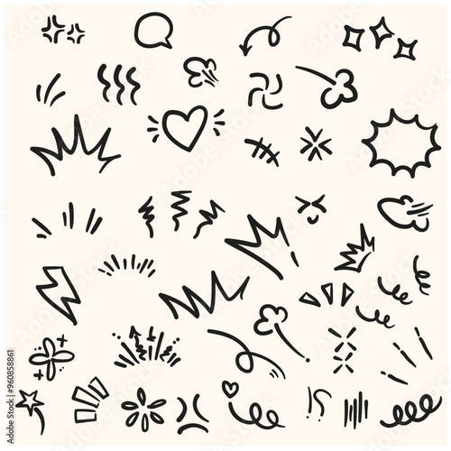 Doodle cute glitter pen line elements With illustration style doodle and line art