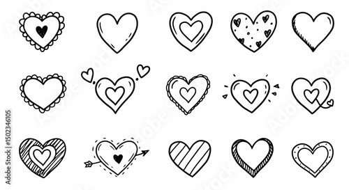 Doodle Hearts: Hand-Drawn Love Symbols Vector Set