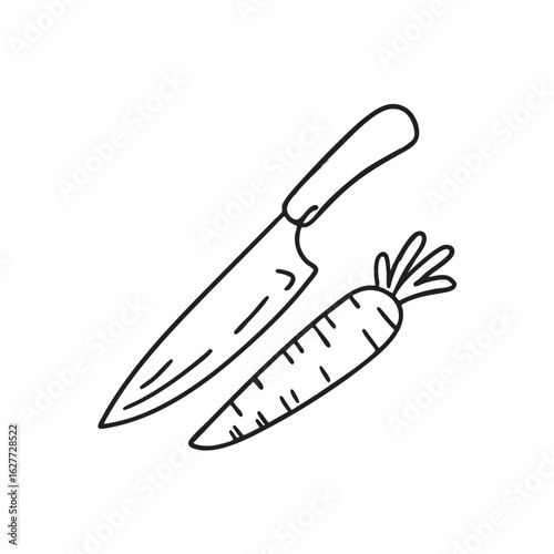 Doodle illustration of a carrot positioned beside a chopping knife