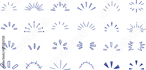 Doodle line sparkles and rays. Hand drawn explosion lines confetti, sun burst, decorative effect surprise elements.