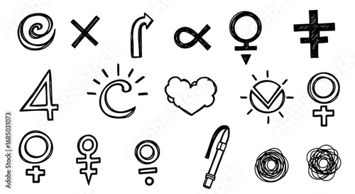 Doodle symbol icon sketch scribble hand drawn handmade pencil pen marker set vector graphic design illustration art