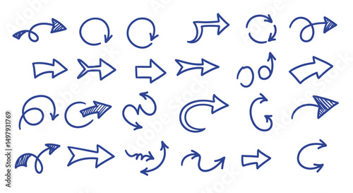 Doodle vector arrows. Isolated, pen drawing. Hand drawn set