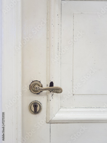 Door handle on wooden door vintage style