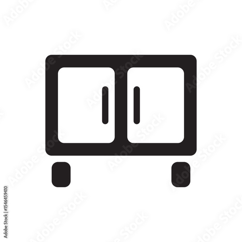 Double door storage cabinet icon. Flat cabinet icon with wheels for office, home, or school interiors.