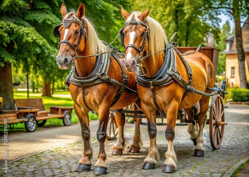 Double Exposure: Majestic Horses Pulling Antique Carriage, Romantic Sunset