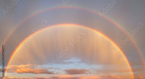 Double Rainbow Dreams Vivid Arcs Paint the Evening Sky with Pastel Clouds.