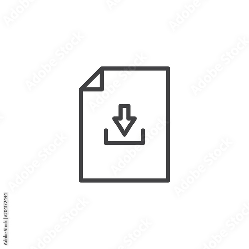 Download file outline icon. linear style sign for mobile concept and web design. Paper document with arrow down simple line vector icon. Symbol, logo illustration. Pixel perfect vector graphics