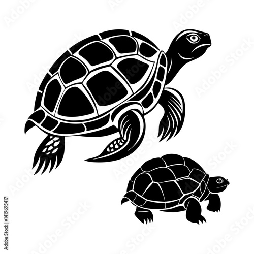 Download Turtle And Silhouette Vector Illustration White Background Svg File For Design.