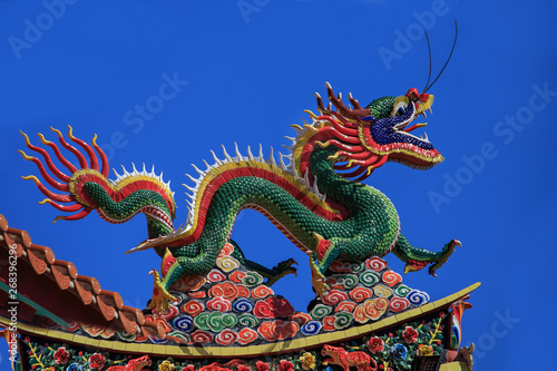 Drache auf dem Dach eines Tempels in Asien, Detail