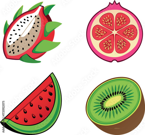 Dragon fruit pomegranate watermelon kiwi slices dragonfruit