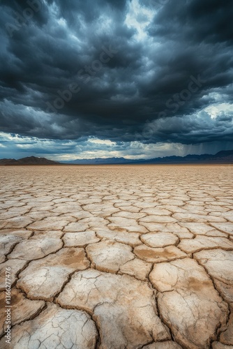 Dramatic clouds over cracked earth landscape