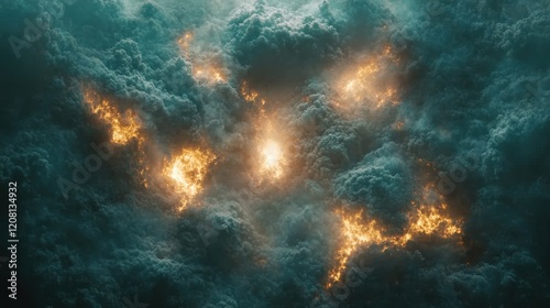 Dramatic Clouds with Fiery Highlights Under a Dark Sky Atmosphere