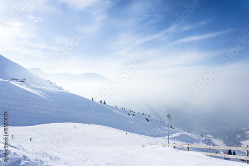 Dramatic clouds with mountain and snow in the evening shot