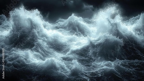 Dramatic Ocean Waves Crashing Dark Night Storm