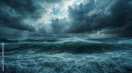 Dramatic Seascape with Rolling Waves and Stormy Sky Nature Landscape