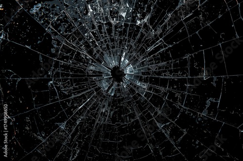 Dramatic Shattered Glass Texture Close-Up, A Visual Metaphor of Destruction and Fragility
