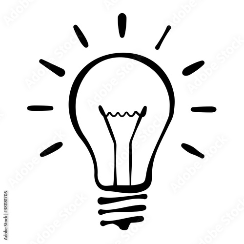 Drawing colorless lightbulb. Simple lightbulb hand drawn style illustration.