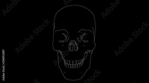 drawing of skeleton skull in black and white