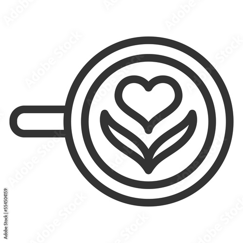 Drawing on coffee in a cup - icon, illustration on white background, outline style