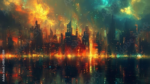 Dreamscape Metropolis: Surreal Abstract Cityscape with Vibrant Colors and Impossible Buildings