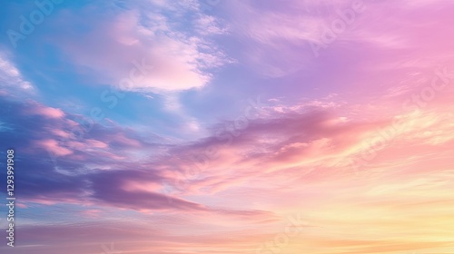 Dreamy blurred sky gradient with soft pink, blue, and peach hues, evoking peaceful twilight.