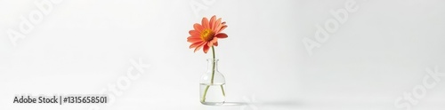 Dried flower in a clear glass container on a white background, sparse,