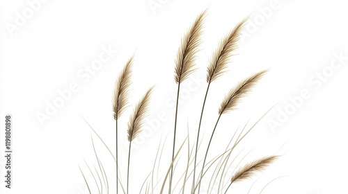 Dried Pampas Grass on White Background: A Minimalist Botanical Illustration for Serene and Calming Home Decor
