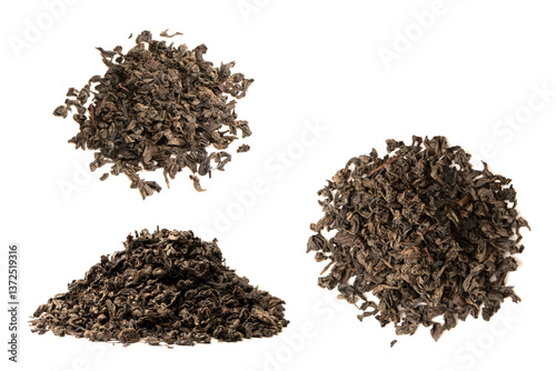 Dried tea leaves isolated on a white background.