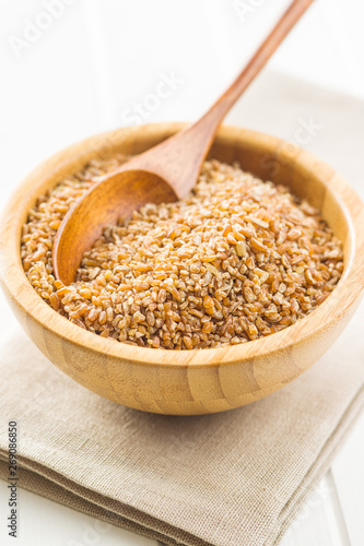 Dry bulgur wheat grains.