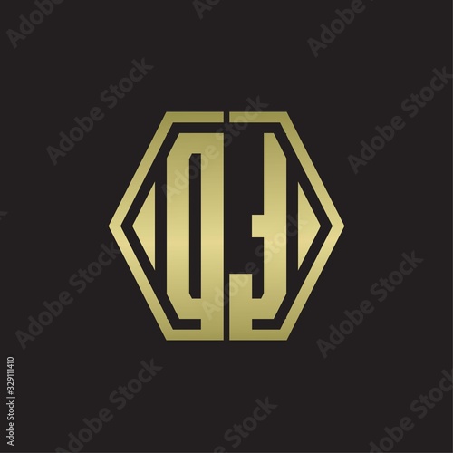 DT Logo monogram with hexagon line rounded design template with gold colors
