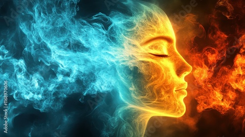 Dual Nature Fire and Ice Abstract Portrait