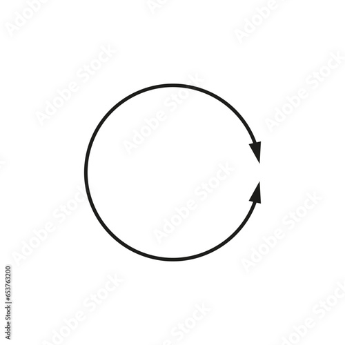 Dual round arrow in circle shape. Circular curved thin long double ended arrow. Vector illustration.
