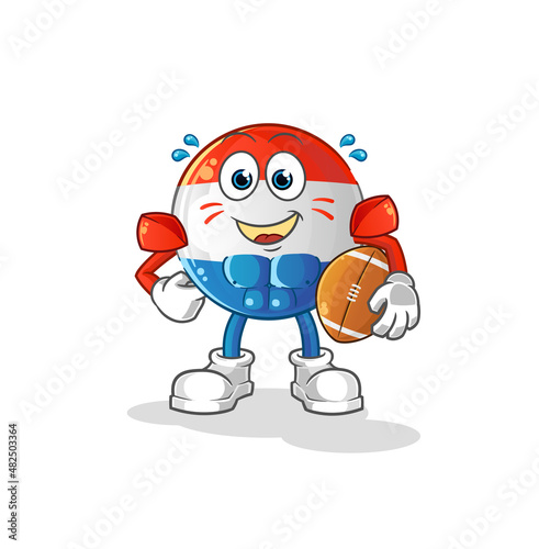 dutch flag playing rugby character. cartoon mascot vector