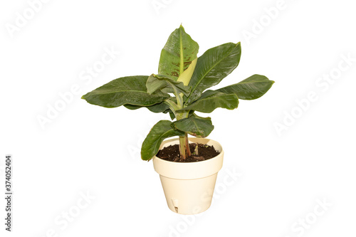 Dwarf cavendish banana tree isolated on white background