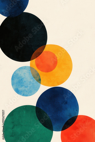 Dynamic Abstract Composition Featuring Bold Colorful Circles with Modern Geometric Patterns and Eye-Catching Design Elements for Contemporary Artistic Inspirations