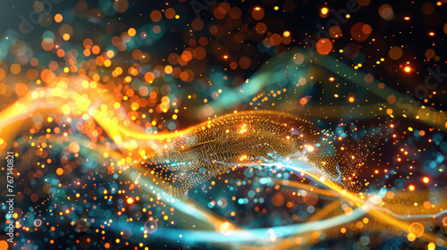 Dynamic abstract wave of light networks. A fusion of science and technology in a radiant visualization of quantum fractals and cosmic metaphors