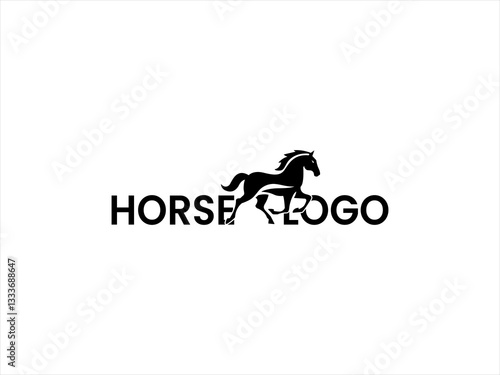Dynamic black silhouette of a running horse logo.