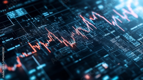 Dynamic data visualization with a focus on stock market trends, featuring vibrant graphs and intricate digital screens.