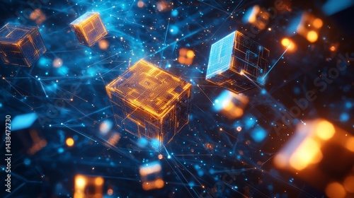 Dynamic digital blockchain visualization futuristic environment abstract art technology concept high-tech viewpoint
