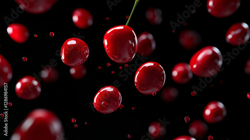 Dynamic display of falling red cherries with subtle reflective highlights