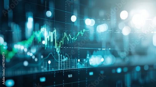 Dynamic financial chart on a glowing digital interface representing stock market trends, data analysis, and economic forecasts.