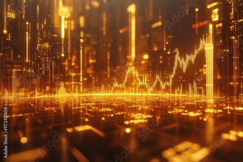 Dynamic gold stock chart analysis financial market digital visualization urban environment close-up view investment insights