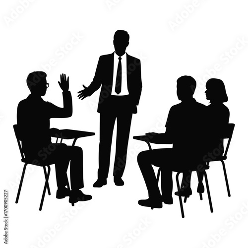 Dynamic Group Discussion Silhouette Professional Business Meeting and Interactive Educational Seminar Vector Illustration