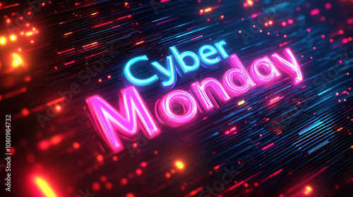 Dynamic neon display reading 'Cyber Monday' with bright colors, ideal for capturing attention during holiday sales and promotions.