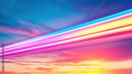 Dynamic streaks of light over an urban bridge under a vibrant twilight sky, dynamic and colorful urban setting