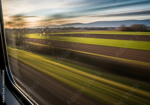 Dynamic Travel: Fast Train Journey Across Vibrant Countryside, Explore the World and Discover New Destinations with Speed and Comfort, Perfect for Travel Blog and Tourism Adverts