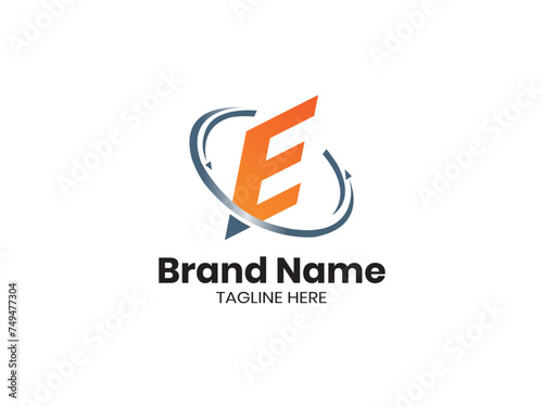 E logo, Initial Letter E Logo connected oval shape Vector Template