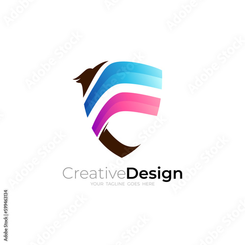 Eagle logo and shield design vector, security logos, letter F